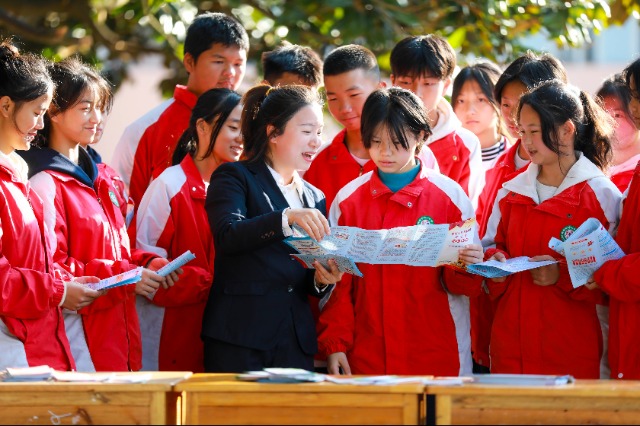 近日,在貴州省黔西市鐘山鎮鐘山中學,鐘山司法所工作人員給學生講解法律知識,為維護社會穩定和民族團結提供有力法律保障。周訓超 攝