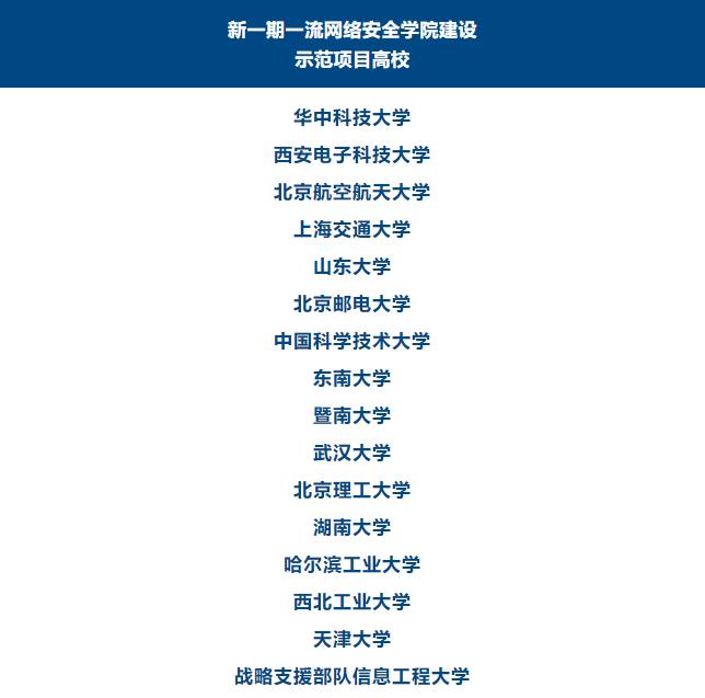 經(jīng)高校申報(bào)、專家評(píng)審等環(huán)節(jié),2024年1月,中央網(wǎng)信辦、教育部評(píng)選產(chǎn)生新一期一流網(wǎng)絡(luò)安全學(xué)院建設(shè)示范項(xiàng)目高校。,跟教育小新一起來(lái)看名單——