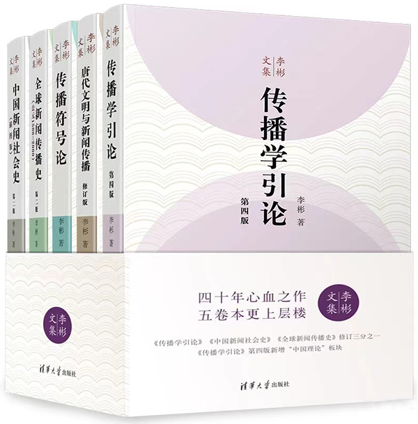 2024年初,由清華大學出版社出版的《李彬文集》正式發行。文集收錄了清華大學新聞學院教授李彬的五部學術代表作:《傳播學引論》(第四版)、《唐代文明與新聞傳播》(修訂版)、《傳播符號論》、《全球新聞傳播史》(第二版)與《中國新聞社會史(插圖本)》(第二版)。