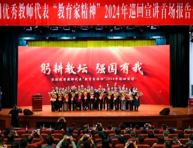 3月3日,教育家精神2024年巡回宣講活動走進四川。6位宣講團成員用切身經歷講述在教育戰線上踐行教育家精神的感人實踐。宣講結束后,與會師生紛紛表示備受鼓舞,要以宣講團成員為榜樣,把教育家精神內化為教書育人能力、教育教學方法,堅守三尺講臺,潛心教書育人,奮力答好“教育強國、四川何為”“強省建設、教育何為”的時代答卷。