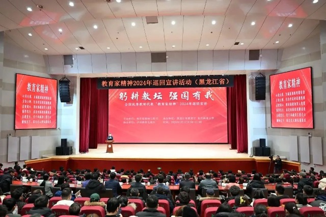 3月1日,教育家精神2024年巡回宣講活動走進黑龍江。6名優秀教師作精彩宣講,講述了他們躬耕教壇、無私奉獻的育人實踐和感人故事,一份份成績單讓觀眾感受著“大國良師”的高尚形象,充滿豪情的話語讓教育家精神在廣大教師心中激蕩。全省40余萬大中小學教師在線上線下聆聽報告。