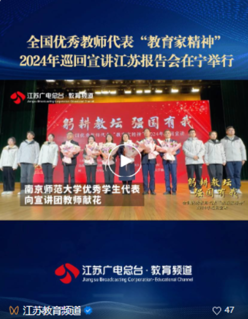 3月2日,教育家精神2024年巡回宣講活動走進江蘇。6位宣講團成員作教育家精神宣講報告,用切身經歷講述各自在教育戰線上踐行教育家精神的感人實踐。南京市中小學教師代表、在寧高校教師代表、在寧師范院校師范生代表1300余人在主會場參會,全省各設區市教育局和各高校設分會場組織師生在線觀看,實時在線觀看數超200萬人次。