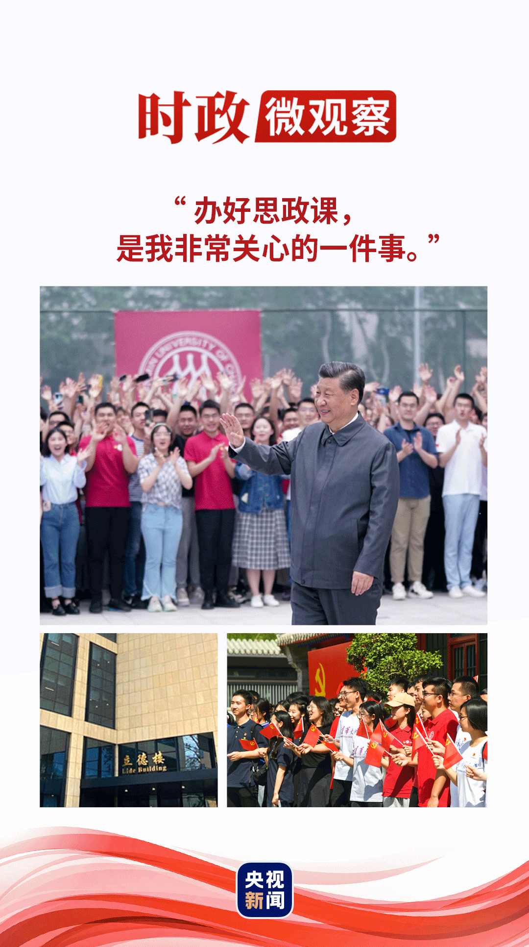 上這堂課的立德樓,取名自“人無德則不立”,蘊含了“育人的根本在于立德”的樸素道理。落實立德樹人根本任務,思政課是關鍵課程。習近平總書記說:“辦好思政課,是我非常關心的一件事?!?/p>