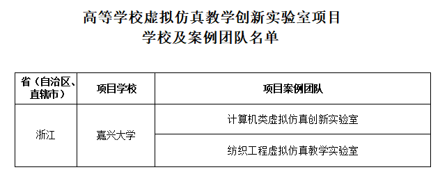 中國教育新聞網訊(記者 焦小新)近日,教育部教育技術與資源發展中心印發《關于公布高等學校虛擬仿真教學創新實驗室項目學校及案例團隊名單的通知》(教技資〔2024〕24號),嘉興大學入選首批高等學校虛擬仿真教學創新實驗室項目,計算機類虛擬仿真創新實驗室、紡織工程虛擬仿真教學實驗室被認定為高等學校虛擬仿真教學創新實驗室項目案例團隊。