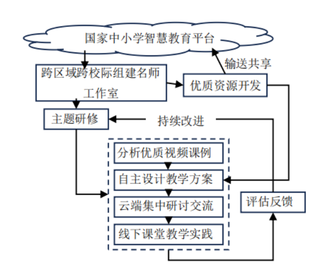 以平臺為載體,組建區域學校教研共同體,通過主題研修、名師工作室等方式,分享資源、共建資源、交流研討。以平臺應用和平臺數據為支撐,通過分析案例、自主設計、教學實踐、評估反饋等環節,在專家指導、同伴互助、自主深入探究的過程中高效完成教學設計,及時解決教師遇到的教育教學問題。在區域研修中,組織骨干教師共同開發優質資源,輸送平臺實現共享、交流、展示,促進優質課程資源廣泛輻射。