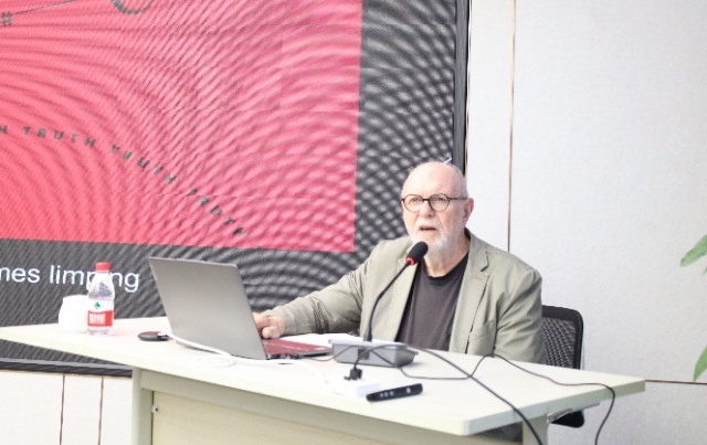 歐洲科學院外籍院士、拉丁美洲科學院院士、上海交通大學人文藝術研究院院長王寧作主旨演講 上海交通大學人文學院供圖