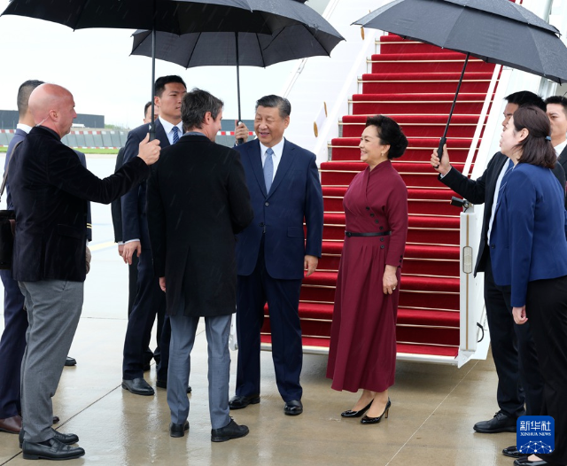 習近平主席夫人彭麗媛,中共中央政治局常委、中央辦公廳主任蔡奇,中共中央政治局委員、外交部部長王毅等陪同人員同機抵達。