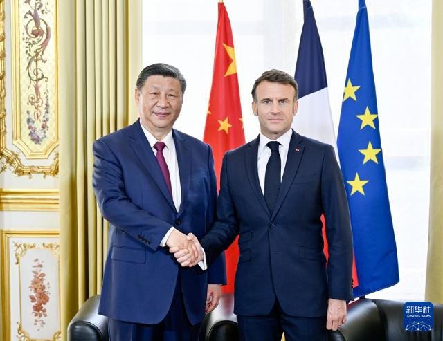 習近平指出,很高興在中法建交60周年之際對法國進行第三次國事訪問。中法關系60年珍貴歷程,將使我們更好思考如何開啟下一個60年。在當前世界百年變局下,雙方應該堅守獨立自主、相互理解、高瞻遠矚、互利共贏的建交初心,并為其注入新的時代內涵,打造新時期互信穩定、守正創新、擔當作為的中法關系。雙方要堅持獨立自主,共同防止“新冷戰”或陣營對抗;要堅持相互理解,共同促進多彩世界的和諧共處;要堅持高瞻遠矚,共同推動平等有序的世界多極化;要堅持互利共贏,共同反對“脫鉤斷鏈”。