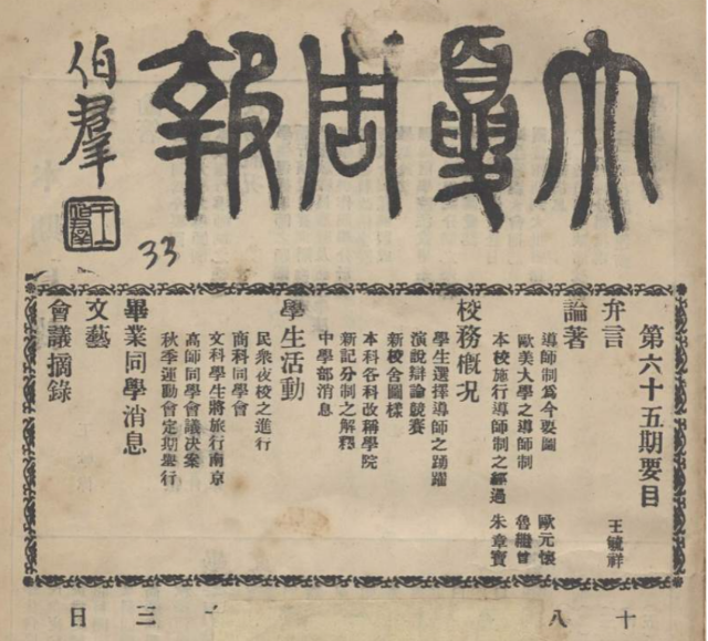 《大夏周報》刊文介紹導師制。學校供圖