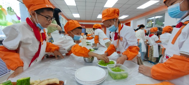 濟南高新區金谷小學學生在“食育工坊”包水餃 魏海政 攝