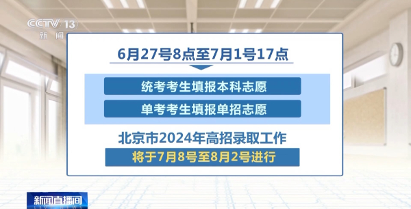 2024年北京市高考成績將于6月25日中午前發布。同時,將發布各批次錄取最低控制分數線和北京市考生分數分布表。6月27日8點至7月1日17點,統考考生填報本科志愿,單考考生填報單招志愿。北京市2024年高招錄取工作將于7月8日至8月2日進行。