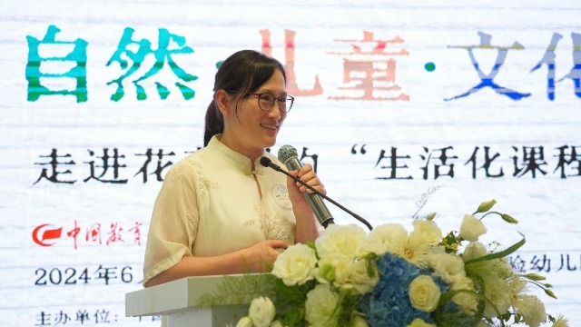 南京師范大學教育科學學院教授、博士生導師黃進以“兒童·生活·課程”為題,分享了對于花草園生活化課程的理解。她認為,生活化是方法,生活是目的,花草園的教師和兒童就是在用良好的生活方式學會過良好的生活,其教育哲學是“因事而思”。在此過程中,兒童是“行事者”,幼兒園教師保持著對生活價值的反思。