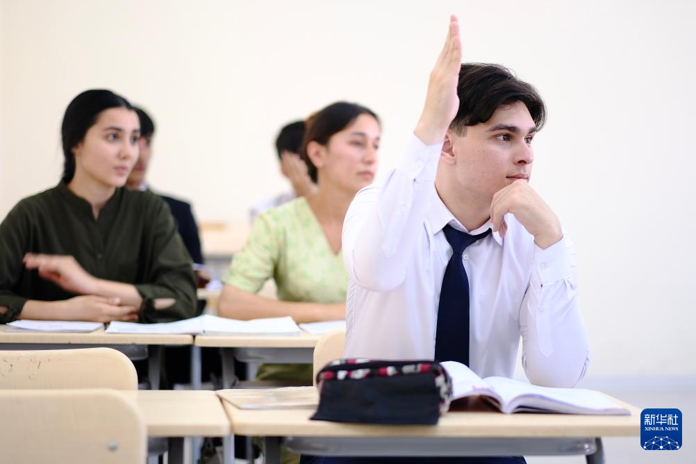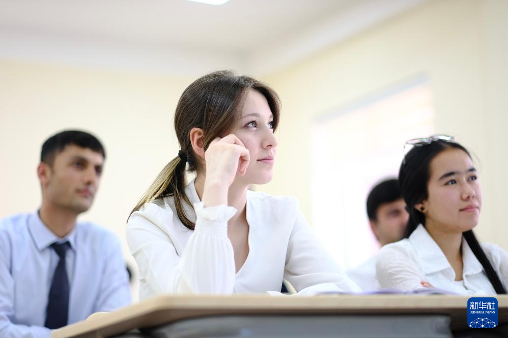 6月12日,在塔吉克斯坦首都杜尚別,學生在塔吉克斯坦民族大學孔子學院課堂聽課。新華社記者 鄭開君 攝