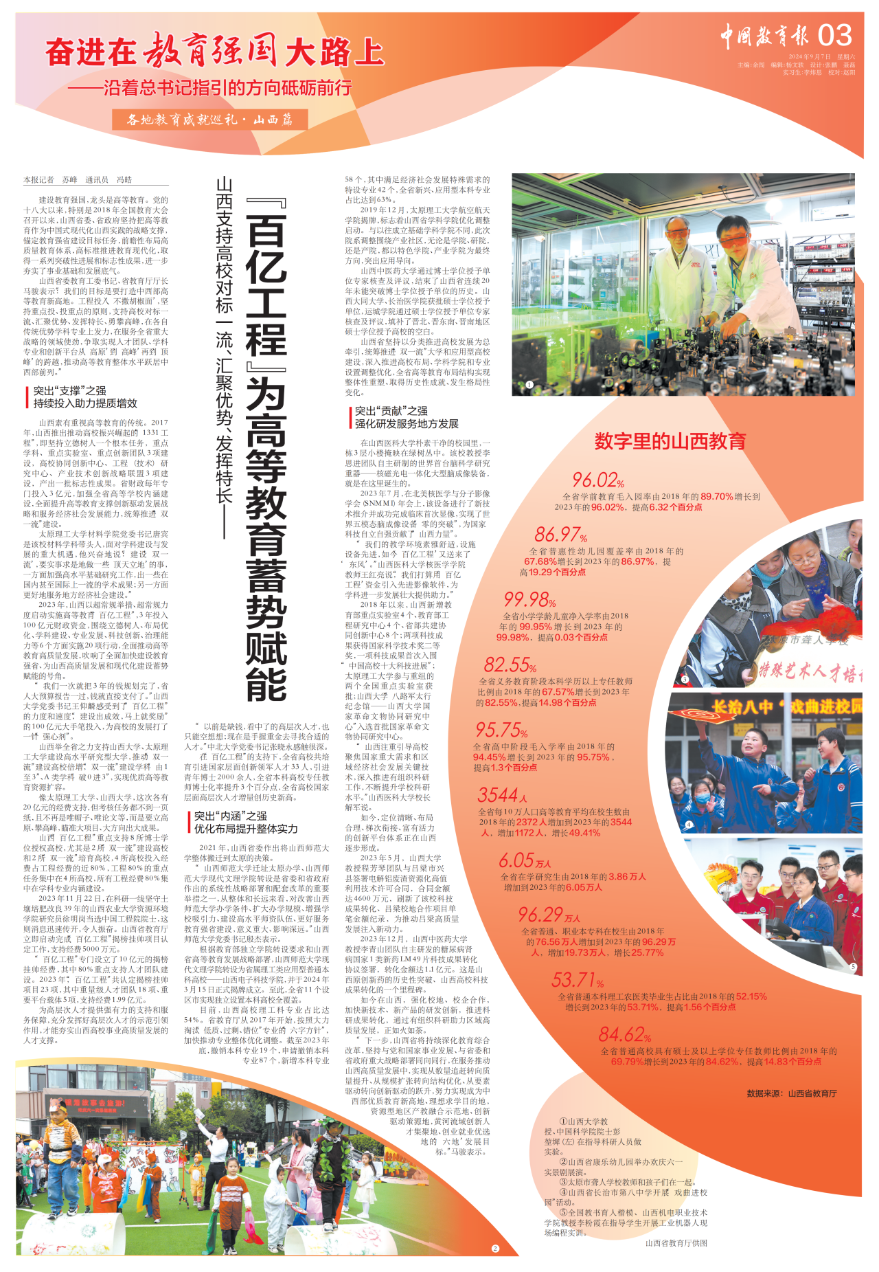 今天,“奮進在教育強國大路上——沿著總書記指引的方向砥礪前行”專欄之“各地教育成就巡禮”系列,通過一個視頻、一組大圖、一篇報道介紹山西如何支持高校對標一流、匯聚優勢、發揮特長——