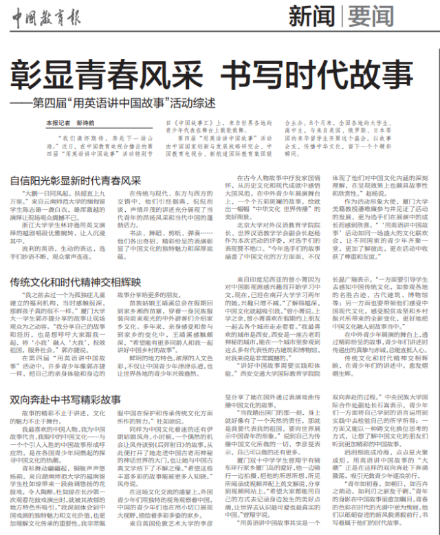 在第四屆“用英語講中國故事”活動中,許多青少年也像郭亦捷一樣,樂于把自己的親身體驗和身邊的故事,分享給更多的朋友。