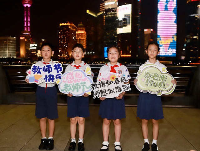 中國教育報-中國教育新聞網訊(記者 任朝霞)9月9日晚,在第40個教師節來臨之際,位于上海黃浦江兩岸的震旦大廈、花旗大廈、白玉蘭廣場、國際港務大廈、上海中心等地標性高樓大屏滾動播放“大力弘揚教育家精神,加快建設教育強國”“弘揚教育家精神 強國筑夢新時代”“老師,您好!”“教師節快樂!”“老師,您辛苦了!”等標語,共同向廣大教師致敬,營造尊師重教的濃厚氛圍。