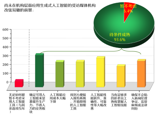 不過,大部分觀望中的媒體機構并不排斥或輕視生成式人工智能,而是計劃在相關條件成熟時再入局,他們優先考慮的前三個條件是: