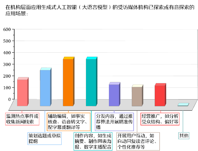 在應用場景上,媒體機構有組織探索較多的前三個方向是: