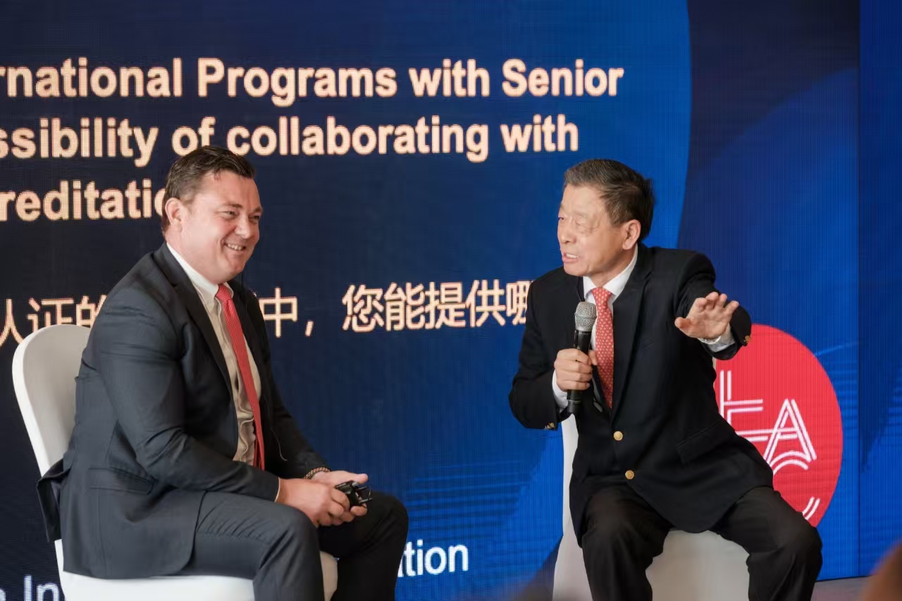 北京王府學(xué)校總校長(zhǎng)王廣發(fā)與美國(guó)新英格蘭院校協(xié)會(huì)國(guó)際教育委員會(huì)副主任Joseph Kotarski對(duì)話