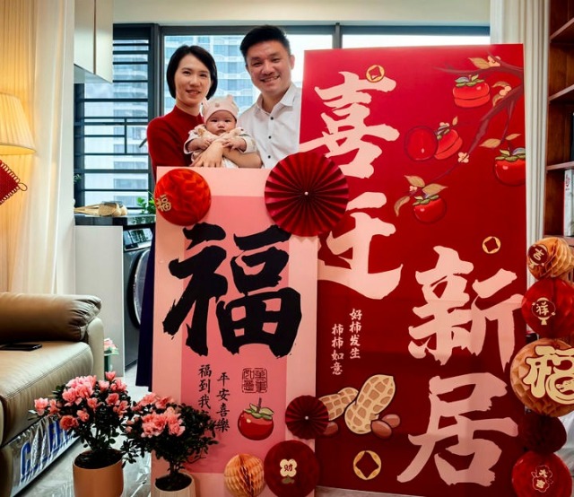 澳門創業青年黃滋才(右)和家人在“澳門新街坊”的家里合影(2024年12月6日攝)。新華社發