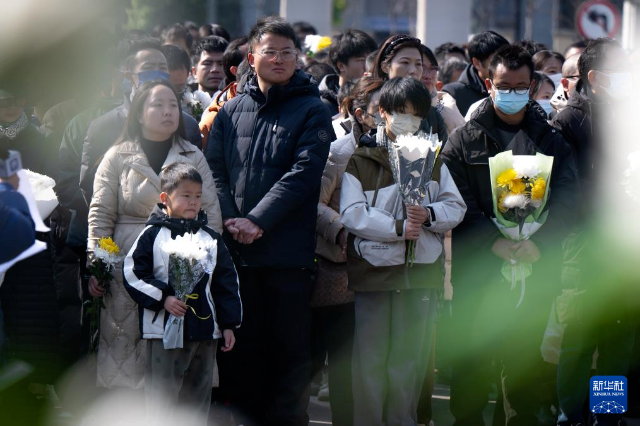 2月10日,人們?cè)谖洳龤泝x館大廳外排隊(duì)等待送別黃旭華院士。