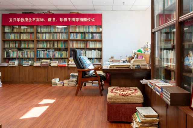 “在書房場景復原區外,我們還充分利用樓道公共空間,推出了人民教育家衛興華書房場景復原特展,以此彰顯衛興華教授治學育人的成就。”中國人民大學博物館、校史館館長李貞實介紹。