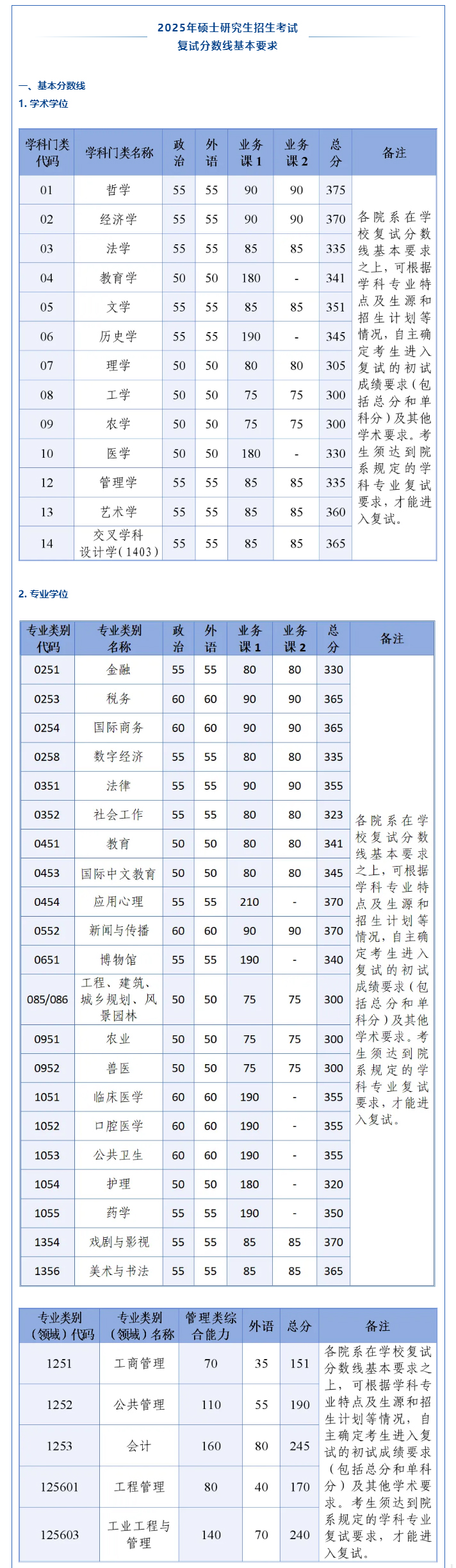 1. 生源充足的學院在達到學校復試分數基本要求的情況下,可根據本學科、專業特點向上調整本學院復試分數要求,具體以各學院通知為準。