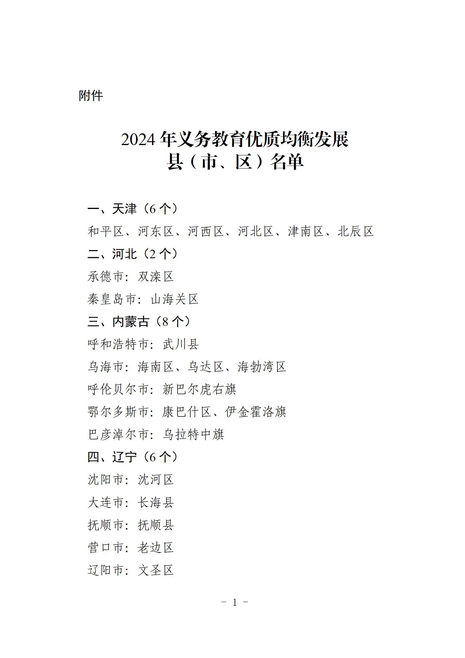 經(jīng)組織開展資格審查、質(zhì)量監(jiān)測(cè)、社會(huì)認(rèn)可度調(diào)查、指標(biāo)審核、核查評(píng)估等國(guó)家督導(dǎo)評(píng)估認(rèn)定程序,近日,教育部印發(fā)通知,決定認(rèn)定天津市和平區(qū)等188個(gè)縣(市、區(qū))為2024年義務(wù)教育優(yōu)質(zhì)均衡發(fā)展縣。