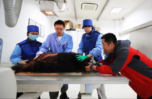3月23日,揚州大學(xué)動物醫(yī)院。郭龍醫(yī)生在兩名實習(xí)學(xué)生的協(xié)助下,對“琪琪”進行高頻數(shù)字式X光機的檢查。