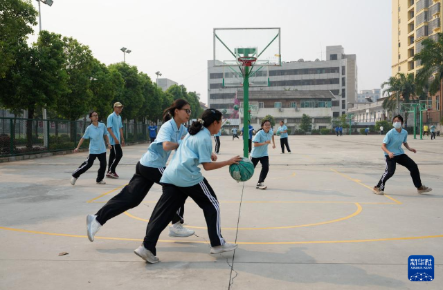 3月31日,瑞麗市第一民族中學學生在球場上打籃球。