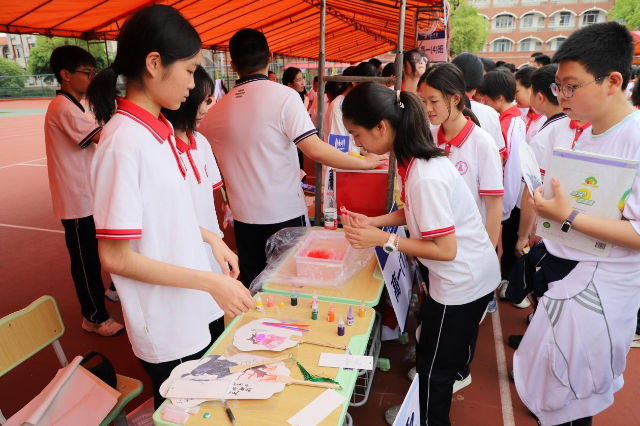 在班級成果展示環(huán)節(jié),班級通過各具特色的班本課程展示學科融合新范式。例如,高一(1)班就融合化學原理與傳統(tǒng)工藝,通過“花青素提取實驗”與“漆扇制作”,讓科學與美的感知在學生心中生根。
