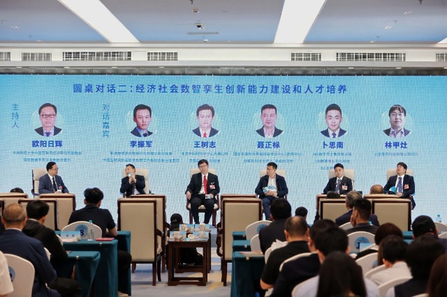 圓桌對(duì)話圍繞“數(shù)智社會(huì)背景下的數(shù)字人才培養(yǎng)課程體系建設(shè)”“經(jīng)濟(jì)社會(huì)數(shù)智孿生創(chuàng)新能力建設(shè)和人才培養(yǎng)”主題展開交流。中國互聯(lián)網(wǎng)協(xié)會(huì)數(shù)字政府工作委員會(huì)副主任委員李振軍,國家發(fā)展和改革委員會(huì)培訓(xùn)中心(宣傳中心)戰(zhàn)略規(guī)劃處負(fù)責(zé)人聶正標(biāo)等專家深入探討了人才培養(yǎng)過程中的實(shí)際需求與挑戰(zhàn),強(qiáng)調(diào)需加快構(gòu)建產(chǎn)學(xué)研用一體化的新型培養(yǎng)模式。