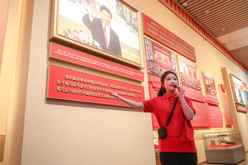 中國教育報-中國教育新聞網訊(記者 焦以璇)“大家現在所在的一層中央大廳共展出各型飛機23架,其中地面陳列16架,空中懸掛7架。”“大家看!這是邊防官兵執行任務中使用的黨旗、官兵寫在羊皮褥子上的請戰書”……近日,在中國人民革命軍事博物館里,北京聯合大學的學生講解員用貼近青年思維的語言為本校2024級參訓學生講述著強軍故事。
