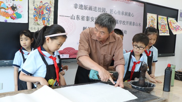 泰山木版年畫非遺傳承進(jìn)校園活動(dòng)現(xiàn)場(chǎng)。泰安師范學(xué)校附屬學(xué)校供圖