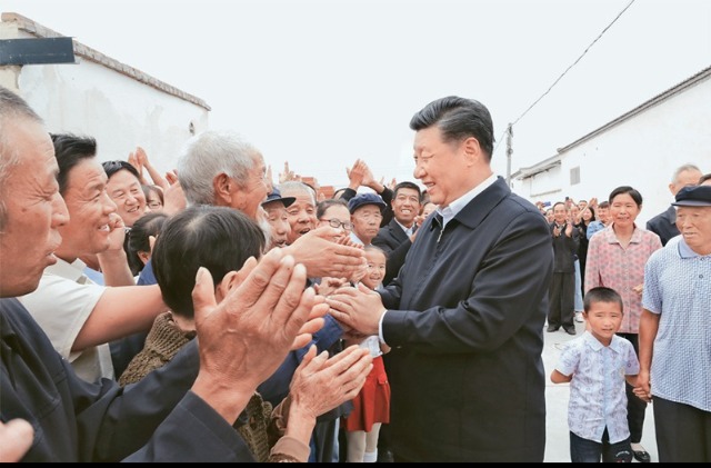 2019年8月19日至22日,中共中央總書記、國家主席、中央軍委主席習近平在甘肅考察。這是21日上午,習近平在武威市古浪縣黃花灘生態移民區富民新村同村民親切交談。 新華社記者 鞠鵬/攝