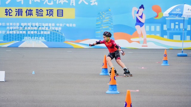 在一眾風馳電掣的追風少年隊伍里,有一道身影格外引人注意。來自甘肅省代表隊的蘇玥小心翼翼地控制著腳下的輪滑鞋,還在障礙設置密集的區域一度停滯不前。現場觀眾們感受到了她的不安,此起彼伏地為她加油打氣。最終,蘇玥順利越過了所有障礙,成功抵達了終點,也迎來全場熱烈的掌聲。蘇玥帶著釋然放松的笑,慢悠悠地滑到了場邊。“今天發揮得還不錯,沒摔跤!”蘇玥是本次甘肅省代表隊參加籃球項目的運動員,對于輪滑項目,她坦言,“確實是抱著體驗的心態來的。因為剛練輪滑沒多久,所以這次給自己設定的目標就是順利抵達終點就好。”通過這次體驗,蘇玥對輪滑也有了更深入的了解。“輪滑更講究協調性,在協調的基礎上還得有速度。”她一邊說著還一邊展示著自己新學的技巧,“輪滑挺有意思的,下次還玩!”