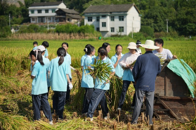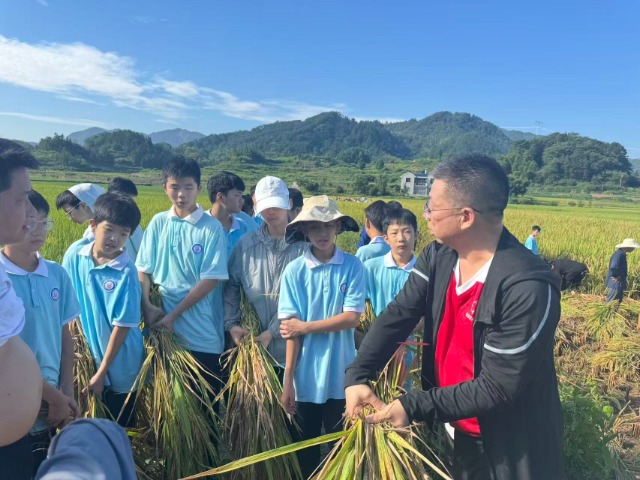 8月24日,湖南省安化縣梅城鎮中學把教室搬進田野,讓學生親手觸摸泥土、執起鐮刀,在躬身勞作中體會“一粥一飯,當思來之不易”的厚重。393班的姚同學擦拭著額角的汗水說:“今天我才真正懂了‘誰知盤中餐,粒粒皆辛苦’的含義!”(中國教育報-中國教育新聞網 通訊員 蔣志球 姚金旺)