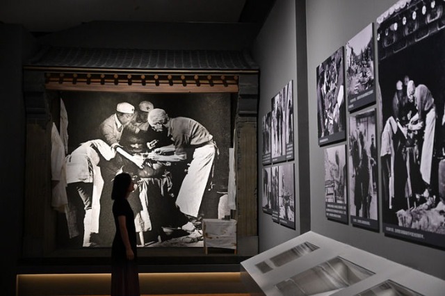 2025年9月7日,在中國國家博物館,一名媒體人員觀看白求恩的照片。新華社記者 金良快 攝