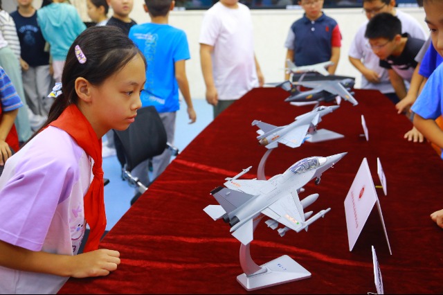 學生觀看校園空軍飛機模型展 學校供圖
