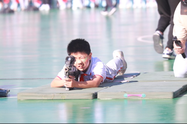 學生體驗模擬打靶射擊 學校供圖