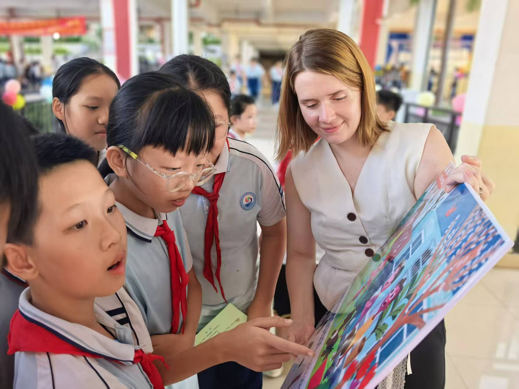 海南外國語職業學院繼續教育與職業培訓中心教師李萍說,“我們組織了來自馬來西亞、俄羅斯、巴西等國家的11名教師和留學生來到學生們中間,通過游戲互動的方式,為學生營造語言交流環境。”