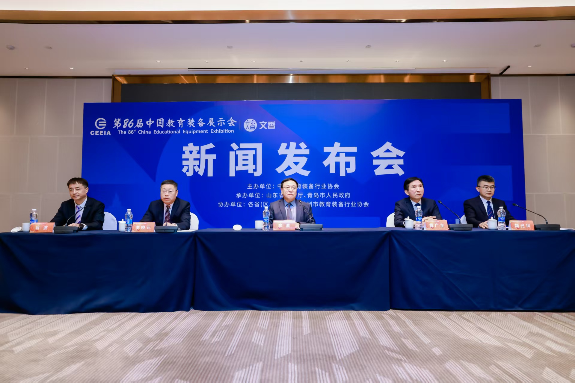 中國教育裝備行業協會秘書長李瀛,山東省教育廳總督學袁廣全,青島市教育局總督學李曉元,青島世博城公司黨委書記、副總經理肖波出席發布會介紹有關情況并回答記者提問。會議由山東省教育發展服務中心黨委書記、主任魏光祥主持。