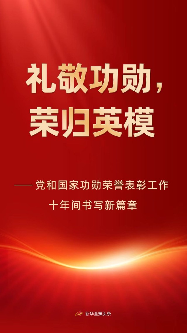 在以習近平同志為核心的黨中央堅強領導下,不斷豐富的制度設計和頒授實踐,推動功勛榮譽表彰充分發揮精神引領、典型示范作用,激勵全黨全社會見賢思齊、崇尚英雄、爭做先鋒,為以中國式現代化全面推進強國建設、民族復興偉業匯聚澎湃力量。