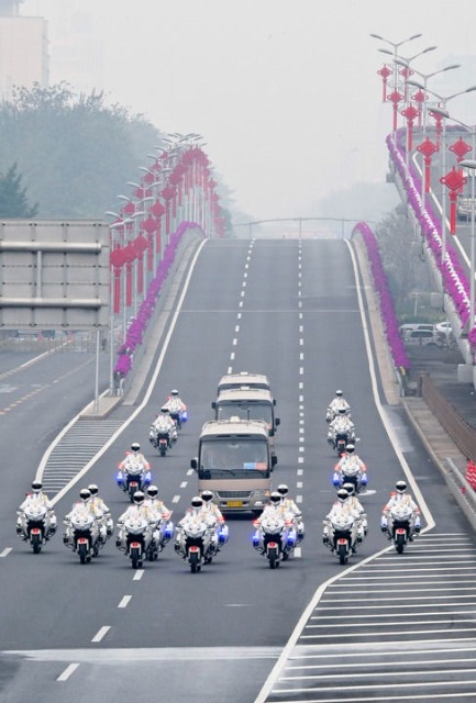 載著英雄的禮賓車隊從住地出發,在禮賓摩托車隊護衛下,駛上復興路,駛入長安街,駛向人民大會堂。
