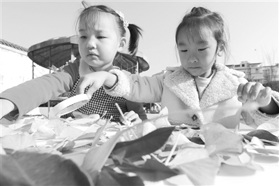 天氣轉冷,落葉紛飛。日前,湖北省竹山縣寶豐鎮中心幼兒園組織幼兒走進植物園,開展撿落葉、識落葉、葉貼畫活動。