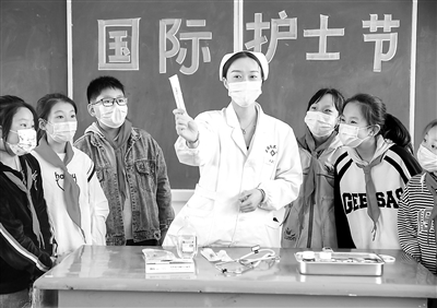 5月11日,在江蘇省如皋市東陳鎮(zhèn)東陳小學(xué),醫(yī)護(hù)人員向?qū)W生講解日常工作操作流程。5月12日是國際護(hù)士節(jié),該校聯(lián)合當(dāng)?shù)匦l(wèi)生院開展“致敬白衣天使,爭做時代新人”的主題活動,旨在讓學(xué)生了解醫(yī)護(hù)人員的辛苦,學(xué)會理解,學(xué)會奉獻(xiàn),用實(shí)際行動踐行社會主義核心價值觀。