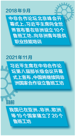 2018年,是魯班工坊發展歷程中一個極為重要的年份。當年9月,習近平主席在中非合作論壇北京峰會上宣布,在非洲設立10個魯班工坊,向非洲青年提供職業技能培訓。12月,習近平主席在里斯本見證了葡萄牙魯班工坊項目的簽約儀式。自此,魯班工坊正式上升為國家重大行動,進入了發展新階段。之后,葡萄牙、吉布提、肯尼亞等國家的魯班工坊相繼建成,遍及亞洲、歐洲和非洲。