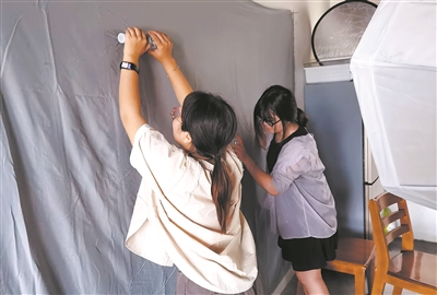 拍攝過程中,師生們也遇到不少困難。拍攝前一天,在布置場地時趕上村里停電,師生們就按照網上搜索到的土方法,從村民家里借來水壺,把溫水灌入空飲料瓶,一點一點熨平幕布的褶皺。