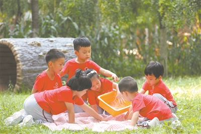 “在這里,幼兒可以爬山登高、騎車游泳,一起數大樹年輪,一起幫螞蟻搬家……由此形成了獨具特色的‘源生態’教育課程體系,真正踐行了陶行知、陳鶴琴等教育家提出的‘生活即教育’。”副園長王岔莊說,作為幼兒生活的一部分,生態環境服務于課程生態、園本課程,綜合指向“育人”第一要務。