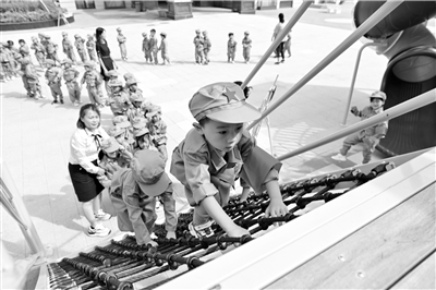 為激發孩子們愛祖國、愛家鄉的情感,弘揚長征精神,近日,安徽省安慶市迎江區墨子巷幼兒園濱江分部開展主題活動,通過模擬“飛奪瀘定橋”“強渡烏江”“巧渡金沙江”等長征路場景,讓孩子們學習紅軍精神,強健體魄,培養堅毅品質。圖為孩子們在進行“飛奪瀘定橋”游戲。 路欣 攝